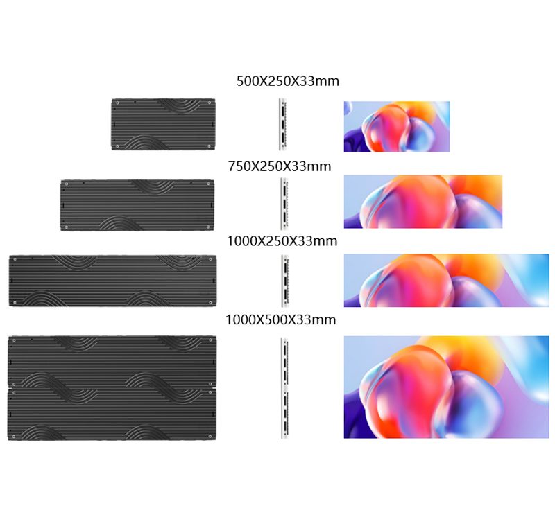 The four types of enclosures, 1000X500mm, 1000X250mm, 750X250mm, and 500X250mm, can be flexibly spliced horizontally and vertically, providing unlimited possibilities for your creative ideas and applications in any scene